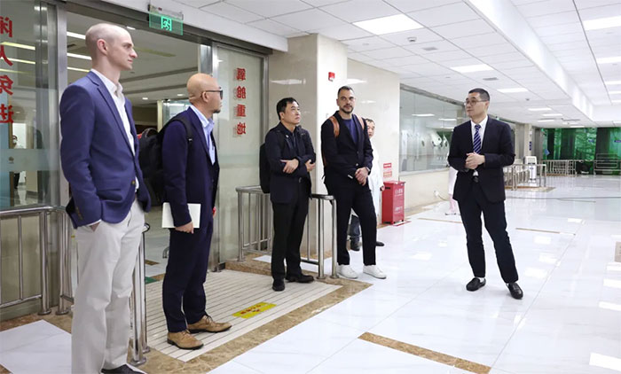 在周克祥副院长陪同下,David Satzer博士与6B神经外二科卢云鹤博士团队开展病例讨论。卢云鹤博士以流利英文主持,双方就大脑中动脉分叉部动脉瘤的治疗策略进行交流。David Satzer博士介绍了美国基于指南的外科手术主流方式,并对蓝十字开展的血流导向装置、WEB扰流装置等介入技术表示肯定。此外,双方还就脑转移瘤综合治疗、强迫症外科手术的伦理法律差异等议题展开探讨。卢云鹤博士重点介绍了医院在脑机接口领域的临床应用,特别是对昏迷患者进行意识评估及脊髓电刺激促醒的实践成果,引起David Satzer博士浓厚兴趣。双方讨论持续两个半小时,意犹未尽,并互换联系方式,期待在学科建设与科研合作方面持续推进。