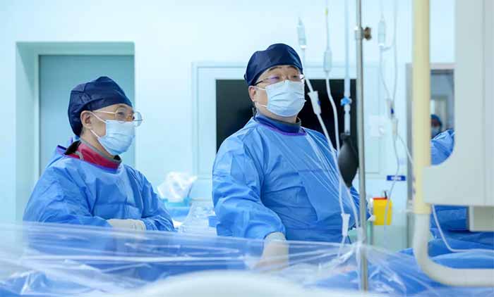 ▲ 姜朝晖博士团队开展双腔无导线起搏器植入手术
