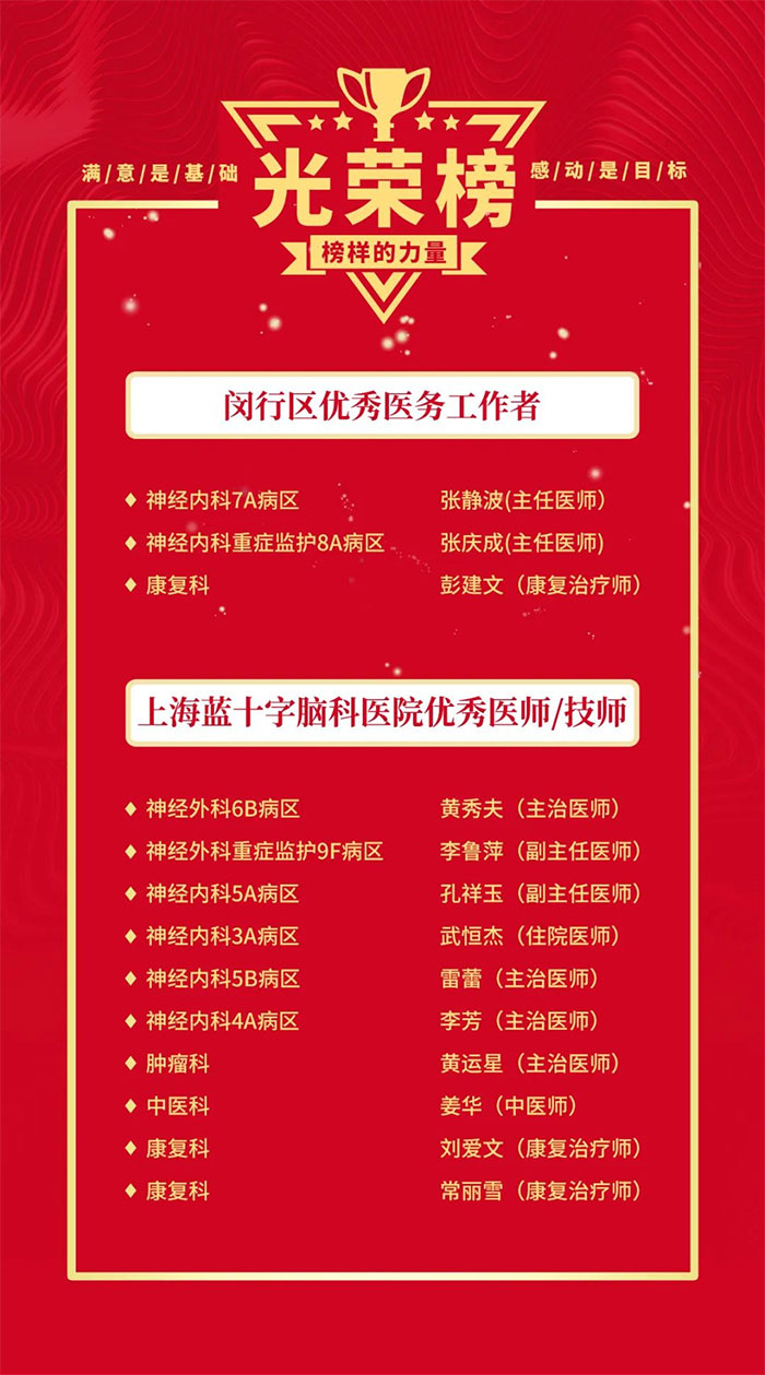 为彰显医院医师队伍“德信为本、精医于民”的职业风采,展现“不忘初心、昂扬奋进”的精神风貌,医院在全院范围内遴选推荐医师参与“闵行区优秀医务工作者”的评选。8月9日,喜讯传来,张静波、张庆成、彭建文三名同志荣幸入选。