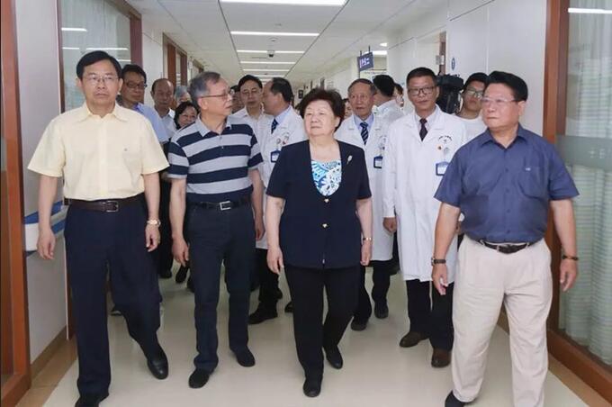 调研期间左焕琛一行先后深入全数字化Hybrid-OR复合手术室、ICU重症监护病区、普通病区、美国尼高力视频脑电监测、神经康复医学中心以及高压氧科、影像科等重点科室实地参观,并与医务人员亲切交谈,详细询问有关情况。