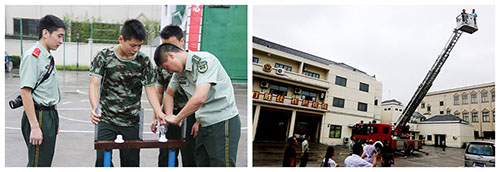 之后,在潘曙鸿中队长的陪同下,大家参观了中队队史馆,观摩了消防官兵出警、登高、云梯车展示等示范表演。