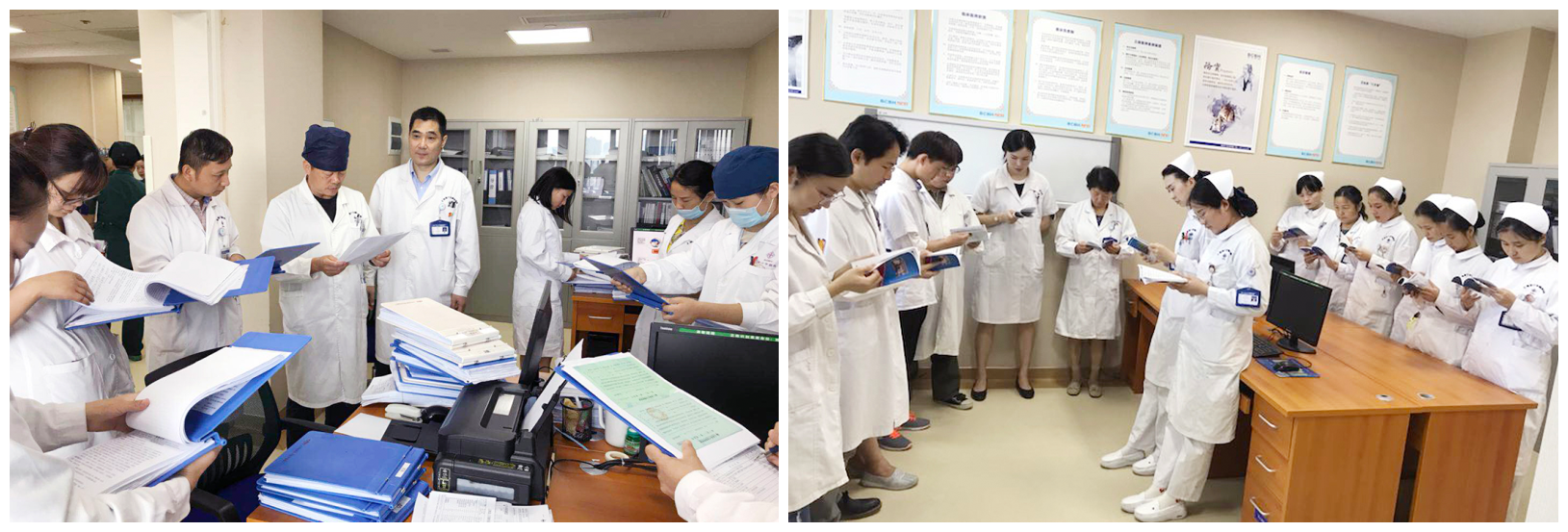 2018年8月JCI进入评审冲刺阶段,第三次模拟评审正如火如荼,以不间断式、点对点式的访谈稽核方式开展,从院领导、科主任到医生、护士、后勤保洁和安保人员,大会、小会、现场稽查连轴转,加班加点JCI培训与章节追踪、完善病历文书,不厌其烦改进质量监测工作,精益求精落实5S标准与要求,查漏、讨论、整改、再讨论...不断循环。