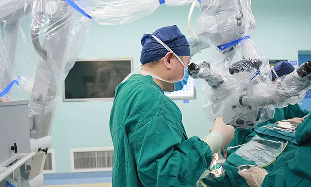 在充分准备并征得家属同意后,李士其教授在吴治群博士、黄秀夫医生协助下为患者行开颅手术,经翼点入路将残余约2.5cm*2cm*2cm大小肿瘤切除。