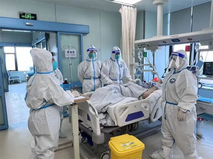 科室查峰、董浩杰、徐亚辉、翁振阳等医生主动留守科室;曹雨枫医生响应号召,义无反顾地支援兄弟病区。他们面对疫情毫不畏惧,穿着厚重的防护服奋勇向前,与赵枫主任一道,不分黑夜白昼,白班夜班连轴转,坚持战斗在抗疫和医疗救治一线。年逾七旬的李鲁萍主任因疫情影响封控在家,但她时刻心系科室,每天参与视频查房,指导重点患者的诊治工作。
