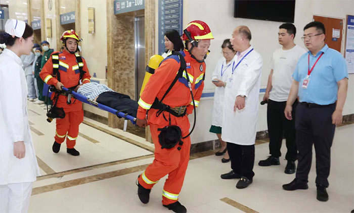 项耀钧院长在讲话中深刻阐述了安全生产工作的极端重要性。他指出,安全是医院运行不可逾越的底线,事关人民群众生命财产安全和医院高质量发展全局。他结合国内外火灾事故案例,分析了医院作为人员密集场所,尤其重症患者行动不便所带来的特殊消防风险,要求全院职工必须牢固树立底线思维,将消防安全责任融入日常工作的每个环节。项院长特别指出,要鼓励隐患上报,将其视同不良事件管理并予以奖励,积极构建主动、前瞻的安全管理文化。