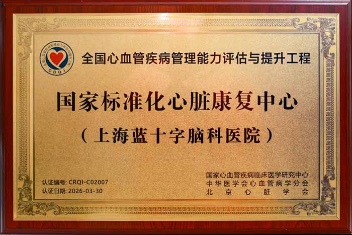 近日,由国家卫健委心血管疾病管理能力评估与提升项目(CDQI)心脏康复项目组、CDQI心脏康复工作委员会、中华医学会心血管病学分会联合组织的第十批标准化心脏康复中心认证结果正式公布,上海蓝十字脑科医院【同济大学附属脑科医院(筹)】凭借扎实的学科基础、规范的康复流程和多学科协作能力,成功通过认证,跻身国家标准化心脏康复中心行列。